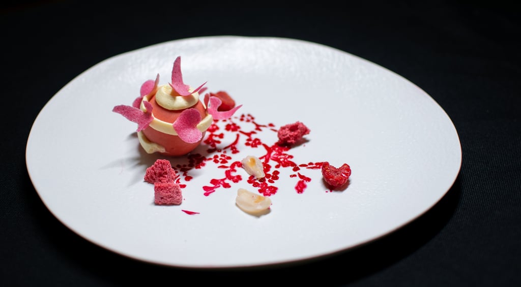 Avietės sfera, rožės, ličiai ir shiso